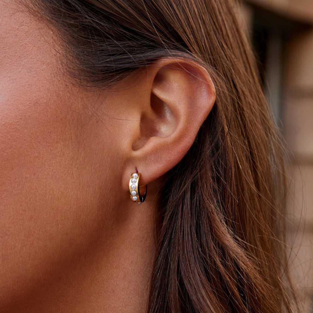 Gold Eula Pearl Hoop Earrings
