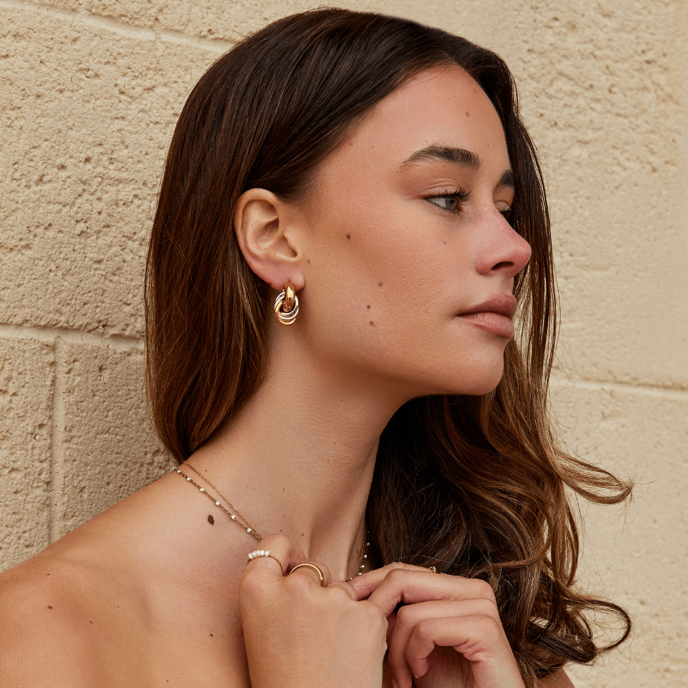 All of our jewellery is made from strong stainless steel and coated with 18K real gold using a PVD (Physical Vapor Deposition) process, making it 100% waterproof and highly durable.