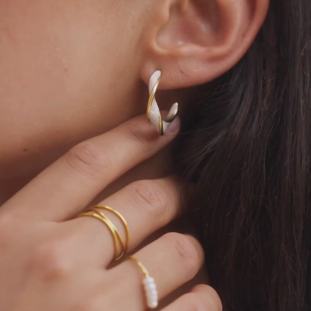 Add the perfect twist to the classic hoop with these beautifully designed Mother of Pearl Twist Hoop Earrings The perfect accessory to add glitz and glamour to any outfit.